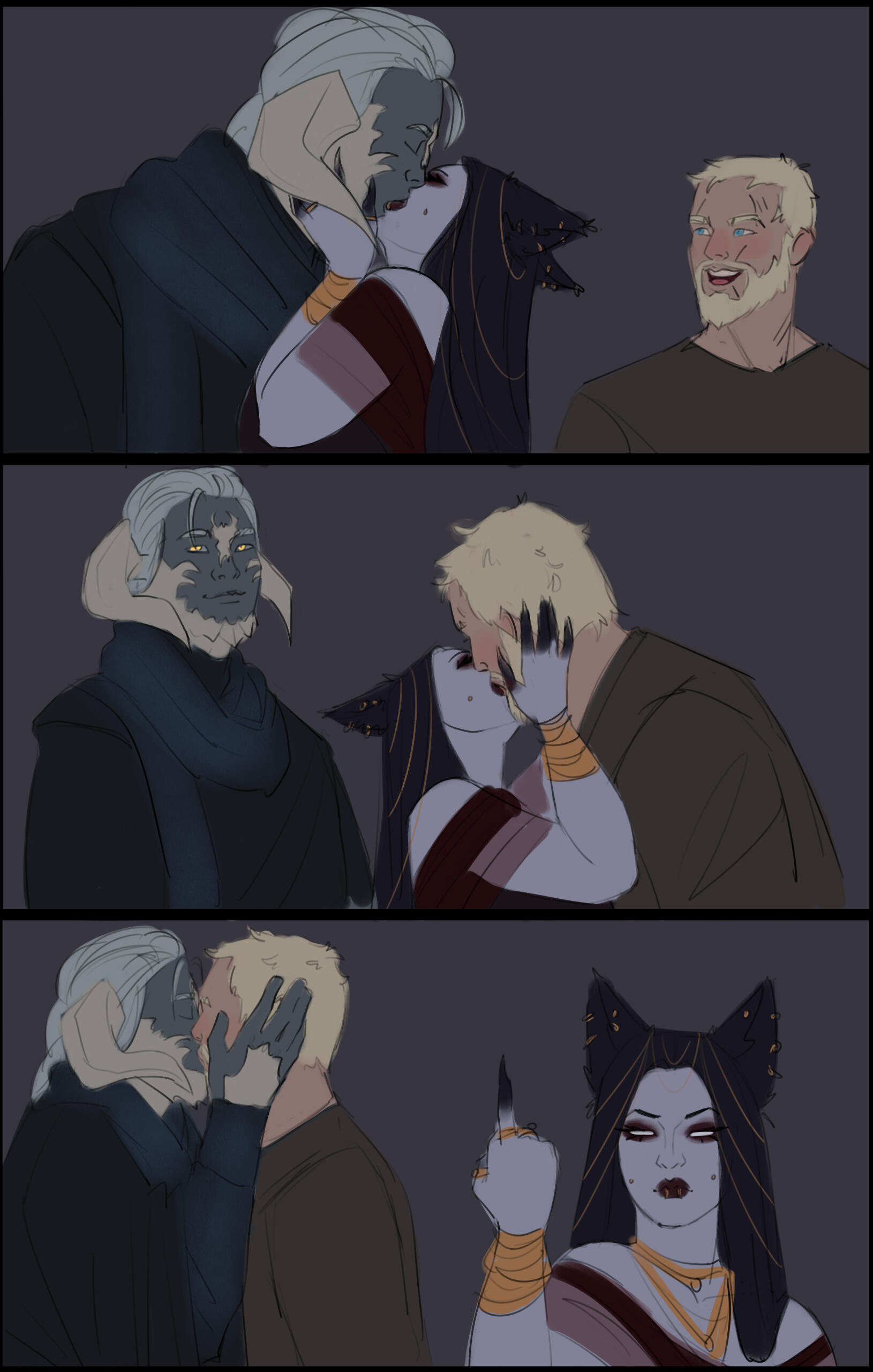"The fates incline us, they do not bind us."Slowly are the words uttered, and with a soft, raspy voice. Often, her placid tone carries sensual notes, the words being purred more than spoken. Her gaze is cold and empty, yet harsh as scathing blades as pale, milky eyes rake over each person she sees. Some consider it to be bad luck when caught in the gaze of a witch. Though few can call it a boon should she be in a good mood.Though shorter than her kin, Ayeh moves with the confidence of a creature ten fulm tall. Her steps are graceful and light as a dancer’s, yet measured and sure as a huntress. Her posture is straight and exact, as if she were a noble of the frigid Ishgard. Rigidity gives way to a natural elegance that cannot be stifled, even when in traditional tribal garb.Inky black tresses flow straight down to brush along her lower back. Fur, the very same color, coats her long feathery tail which she keeps curled from the ground. Midnight silks drape over her form, hugging generous curves sculpted from a life of luxury. Though she is soft and shapely, hints of huntress’ strength can be witnessed by those with a keen eye.Ayeh's skin rarely sees the light of day, and as such, is just as pallid as her eyes. The flesh carries a slight blue tint in the right lighting, and should she move a certain way, it is apparent that her skin is translucent in some areas. Her eyelids and lips are painted black to match her hair, and there is a small black gem, which glints in the light, fixed between her brows.Many piercings mark her body. Everywhere from lips, to cheeks, to ears, to belly button -- and more. From these piercings, thin chains connect to one another, sometimes chiming gently as she moves. Her jewelry is abundant and eclectic. Uncut crystals and bleached bone mingle with polished gems affixed with precious metals. Though she no longer dances, such hints linger in the way she dresses and carries herself.Ayeh is quick to a smile, though the expression rarely reaches her eyes, thus hinting at disingenuous display. This miqo'te is capricious by nature, it is best for one to be on their toes.